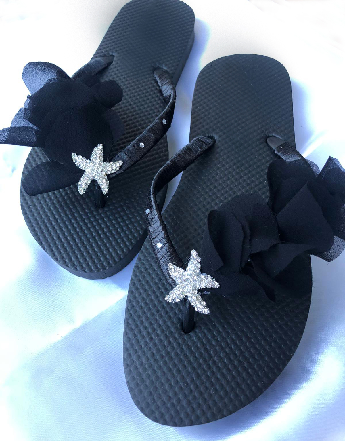Le applicazioni per questo modello sono stella marina in strass, petali di Chiffon color Nero e strass